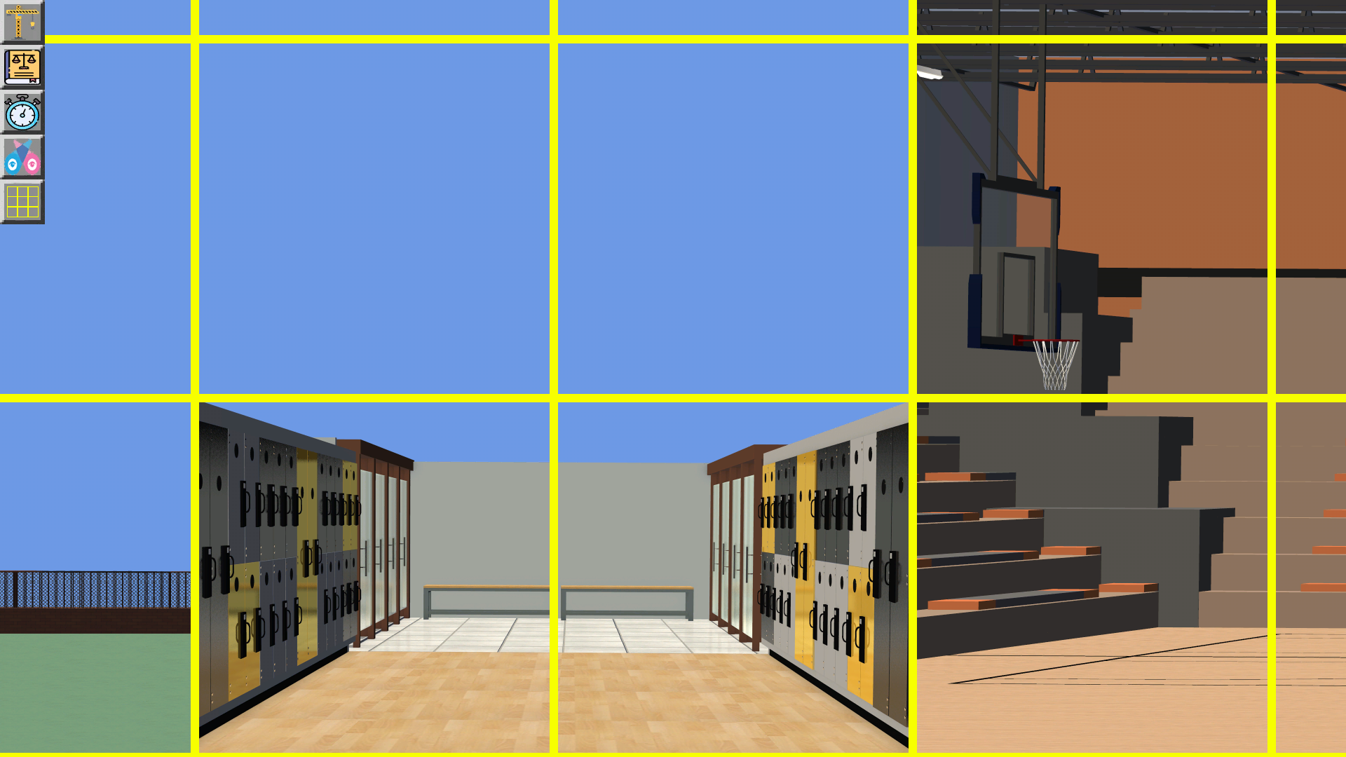 3. Some rooms can be "pealed" back further than others. For some (like the restroom) you will see students enter and emerge, but will not be able to see inside fully. (We're not looking to make a toilet simulator.)