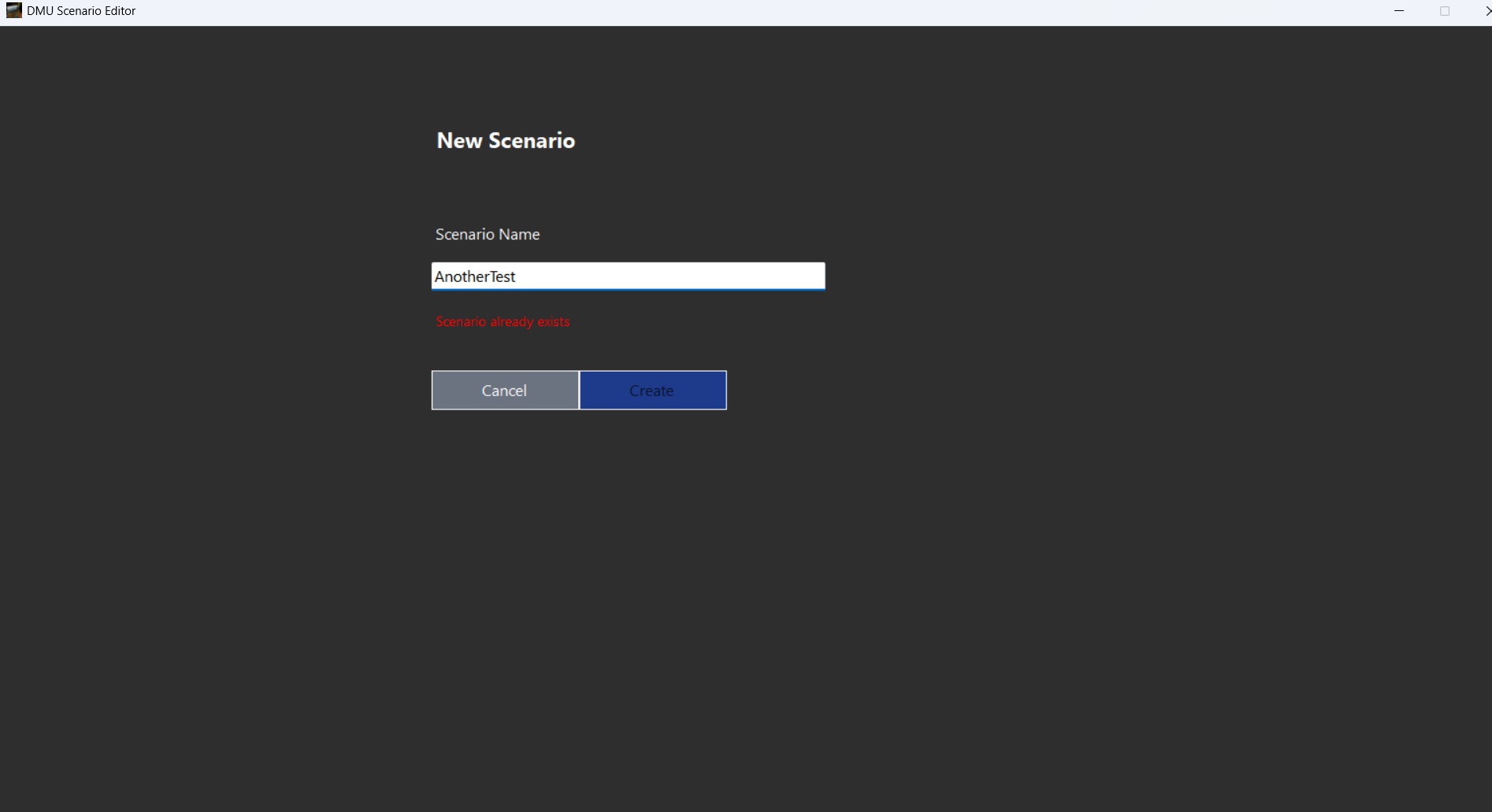 When trying to create a new scenario of the same name, it says "Scenario already exists" (see image 3).